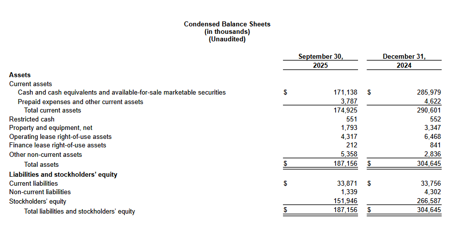 The company ended the quarter with $171.1 million in cash and extended its runway into 2027 through a new loan facility, strengthening its position as it advances late-stage programs and pre-launch activities.