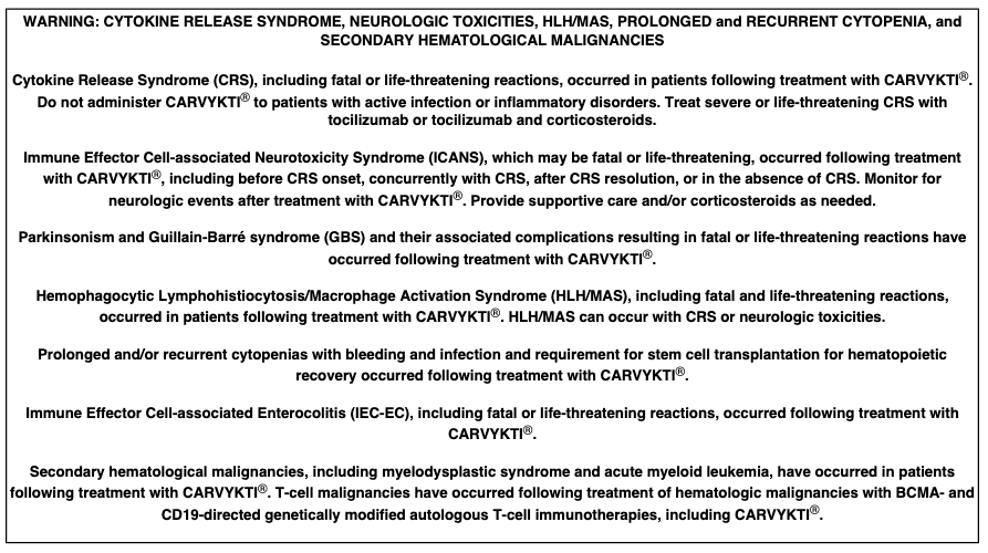 Please read full Prescribing Information, including Boxed Warning, for CARVYKTI®.