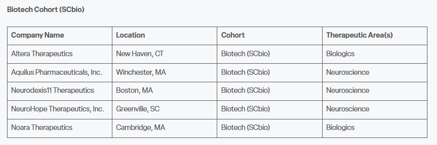 These startups will participate, at no cost to them, in curriculum modules taught by experts, including Browne Consulting, Wilson Sonsini, Lumanity, F-Prime Capital, and Thermo Fisher with MassBio, and Deloitte, medpoint, Maynard Nexsen, Eli Lilly & Company, Inspire Agency, and VentureSouth with SCbio.